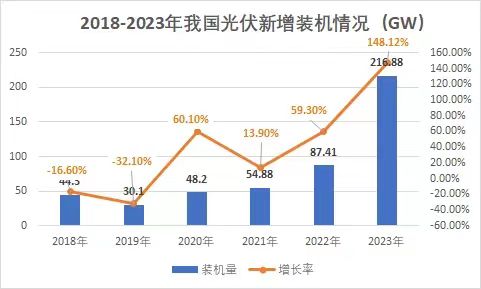 裝機量再度刷新!光伏市場持續(xù)火熱! 1月26日,國家能源局發(fā)布2023年全國電力工業(yè)統(tǒng)計數據。2023年1~12月光伏新增裝機216.88GW,同比增長148.12%。 去年,對于光伏行業(yè)來講是爆發(fā)式增